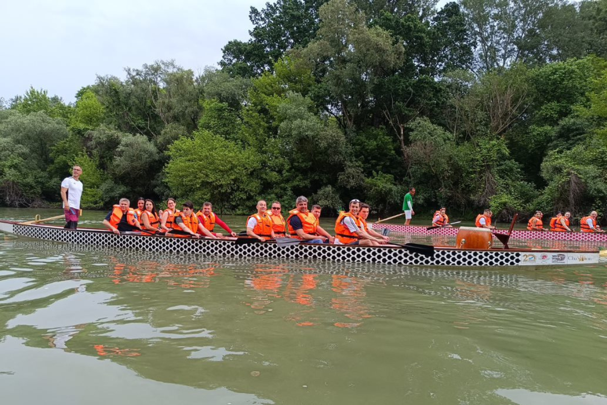 A pénteki közös reggelinket követően a Dunapartra indultunk megmérettetni magunkat: bátor és kalandvágyó munkatársaink a sárkányhajózást próbálhatták ki, és három sárkányhajós csapatunk egy házi verseny keretei között össze is csapott egymással: ezúttal is gratulálunk a győztes csapatnak!