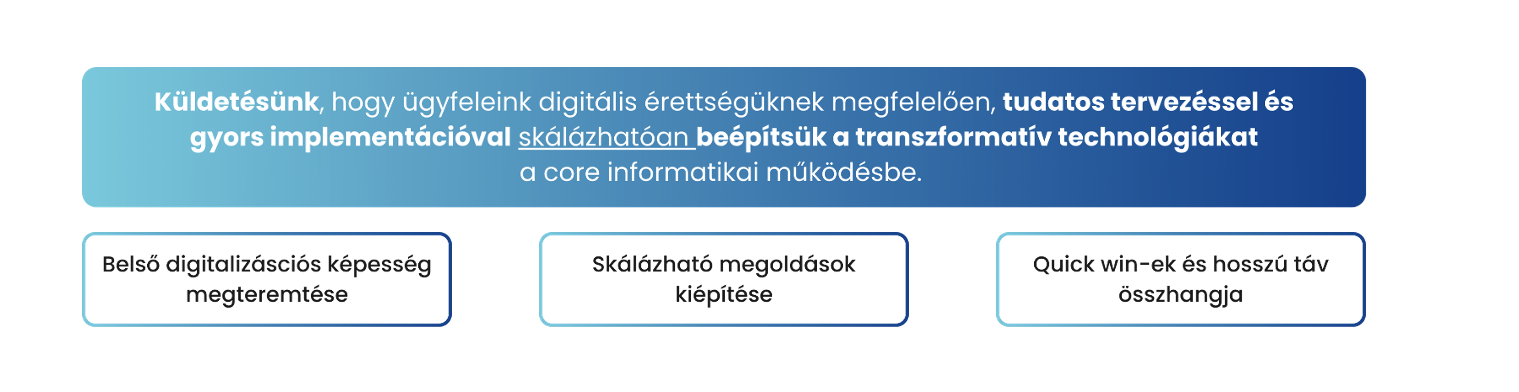 Mi nemcsak eszközt adunk a vállalatok kezébe, hanem végigkísérjük őket a stratégiai tervezéstől a technikai megvalósításon át a skálázásig.