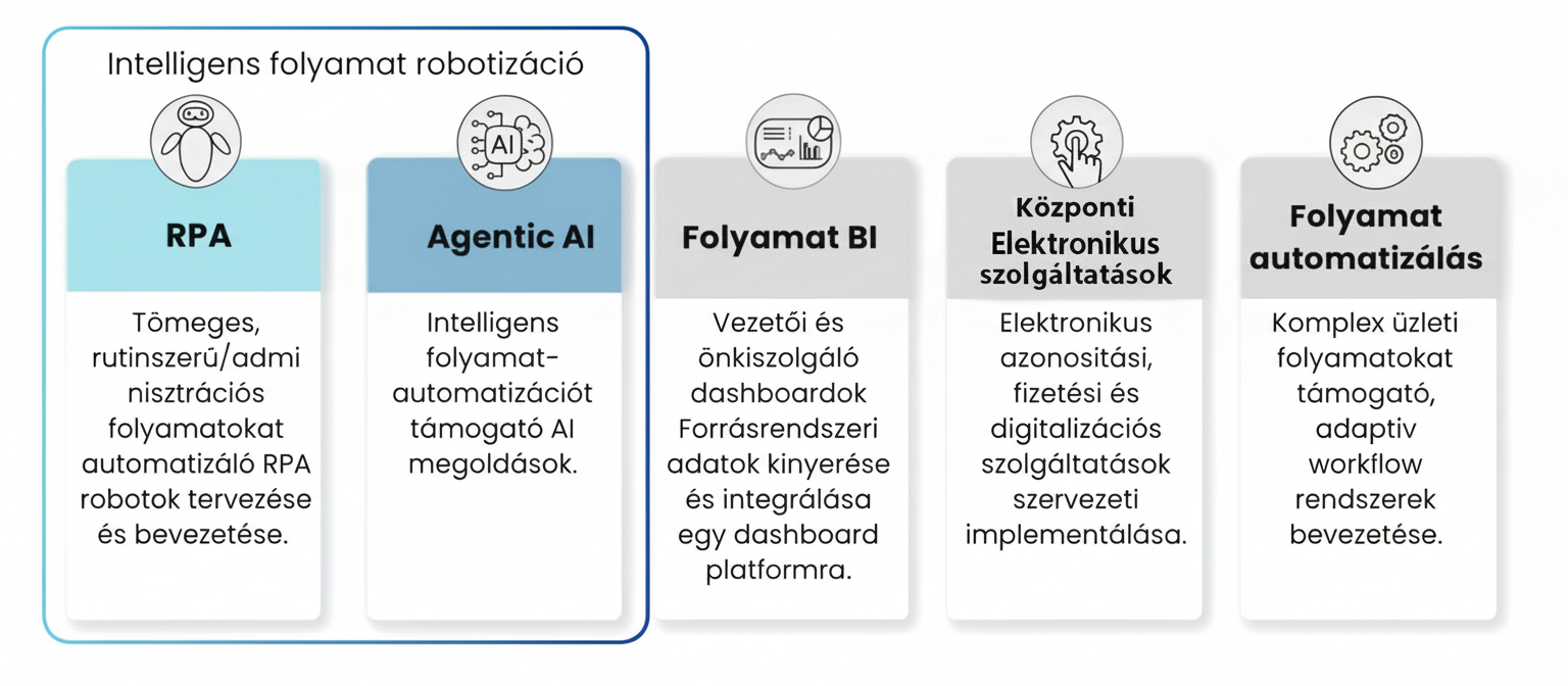 A bevezetést is úgy tervezzük, hogy az már az első lépésektől skálázható legyen – például az RPA esetében nem csak egy robotot telepítünk, hanem a governance kereteket is segítünk kialakítani, sablonokat adunk a fejlesztéshez, támogatjuk a belső kompetenciafejlesztést is. Ugyanez igaz a mesterséges intelligencia megoldásokra is.